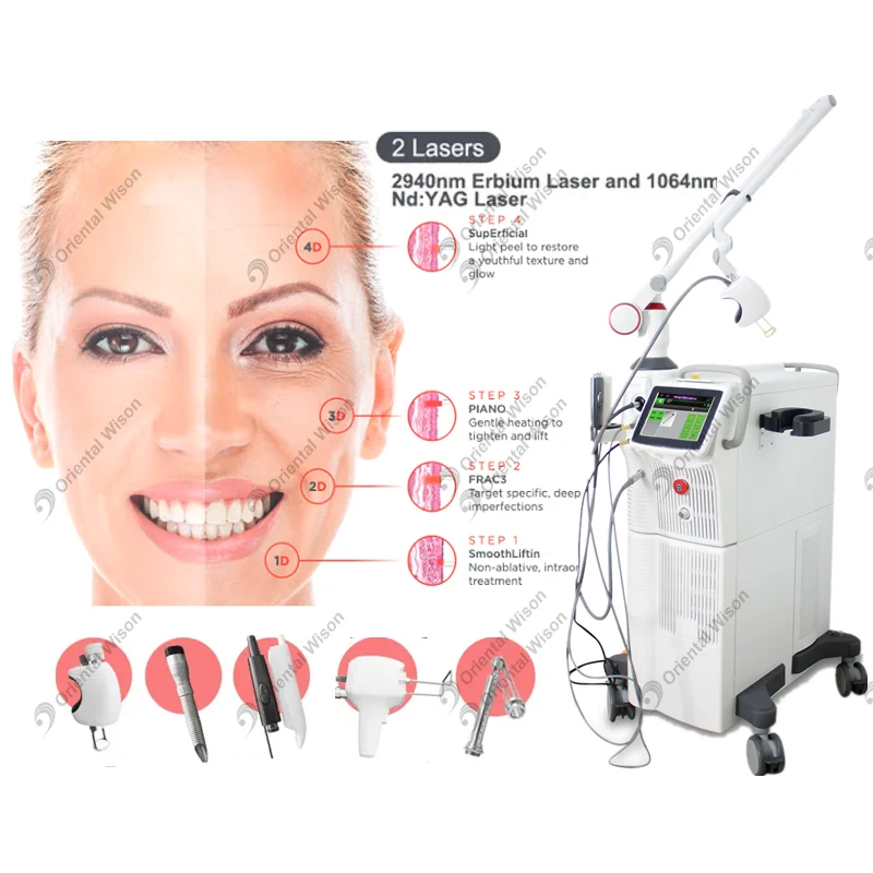 Il laser 4D combina due lunghezze d'onda complementari 1064 nm nd: YAG + 2940 nm ER: YAG. È una serie di trattamenti laser sinergici e non invasivi della cavità orale facciale e interna esterna, consentendo la contrazione a tutto spessore del collagene per il serraggio e la volumizzazione persistenti senza iniettabili. Con due lunghezze d'onda laser (ER: YAG e ND: YAG) e 4 modalità di trattamento, l'anti-invecchiamento è affrontato in modo completo da 4 diversi livelli, lavorando su connessive più profonde, mediali e superficiali della pelle, oltre a colpire le imperfezioni.