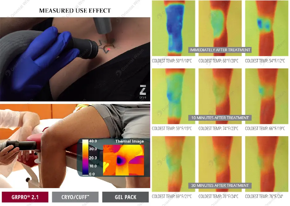 A differenza di altri metodi di raffreddamento, come il raffreddamento a contatto, lo spray criogenico o i pacchi di ghiaccio, la macchina per il raffreddamento del crio diminuisce rapidamente la temperatura della pelle, con meno rischio di ustioni della pelle e mantiene un dosaggio costante per tutto il tempo di trattamento.