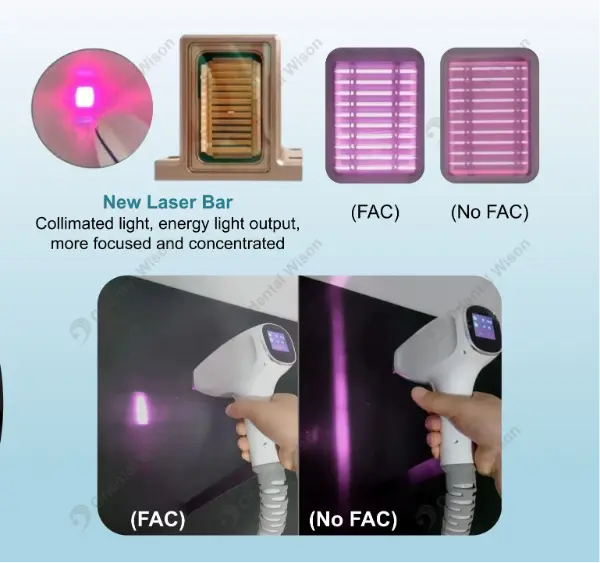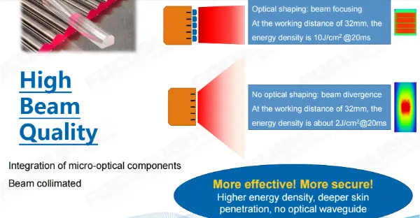 Qualità del fascio superiore: Restringendo la divergenza di ciascun diodo laser, il raggio diventa più preciso, consentendo trattamenti più rapidi e una maggiore efficacia.