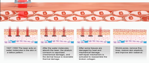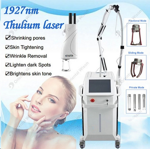 La modalità frazionaria del THULIO del THULIO 1927 NM consiste nell'utilizzare un manipolo frazionario per focalizzare il laser su un piccolo (circa 0,1-0,15 mm di diametro) per irradiare la pelle e ottenere un effetto di microexfoliazione non per l'esfoliazione. Il laser è fortemente assorbito dall'acqua. Quando il laser irradia la pelle, l'energia laser viene assorbita dall'acqua nella pelle, generando un effetto termico. Può trattare efficacemente fosse e segni di acne, pori allargati, cicatrici da ambito del sole o acne e cicatrici chirurgiche. Direttamente i dermi dell'effetto fototermico possono promuovere la rigenerazione del collagene, il trattamento efficace delle linee asciutte, le linee sottili, lo sbiancamento e il ringiovanimento della pelle.